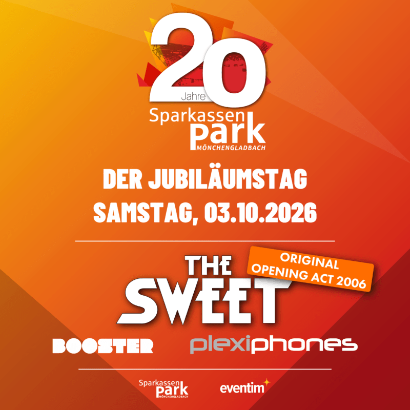 Auch musikalisch wird das Jubiläum zu einem besonderen Ereignis: Neben den Mönchengladbacher Bands Plexiphones und Booster kehrt mit The Sweet die Band zurück, die im Jahr 2006 als erste überhaupt auf der Bühne des SparkassenParks stand und damit den Grundstein einer einzigartigen Veranstaltungsära legte.
