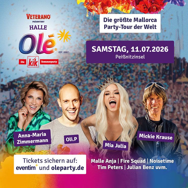 Die Tickets sind ab sofort auf www.oleparty.de und Eventim.de erhältlich.