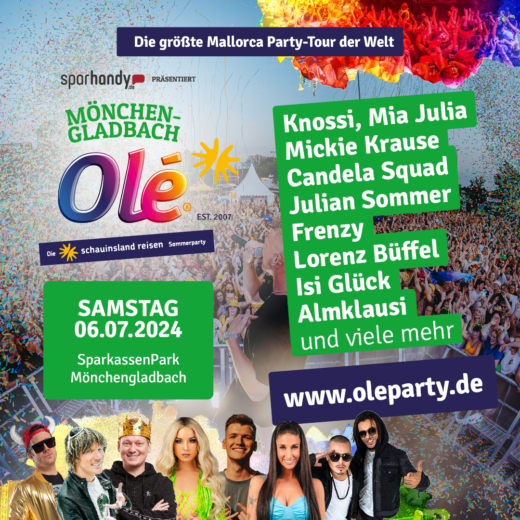 Mit dabei in Mönchengladbach sind unter anderem Mia Julia, Mickie Krause, Julian Sommer, Frenzy, Lorenz Büffel, Candela Squad und erstmalig auch Knossi.