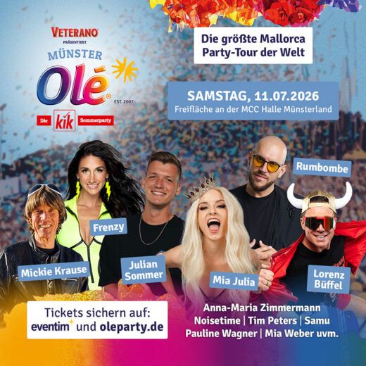 Die Tickets sind ab sofort auf  www.oleparty.de und Eventim.de erhältlich.