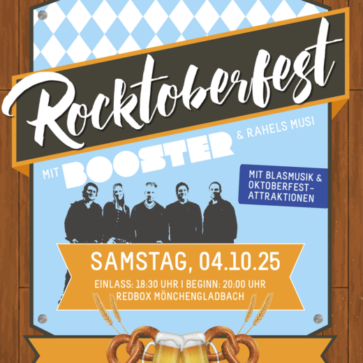 Am 4. Oktober 2025 wird die NEW Box Mönchengladbach (ehemals REDBOX) wieder zum Hotspot für alle, die Rockmusik und Wiesn-Atmosphäre lieben. Wenn rockige Gitarrenriffs auf bayerische Festzeltstimmung treffen, ist beste Laune garantiert – für einen Abend, den man so schnell nicht vergisst!